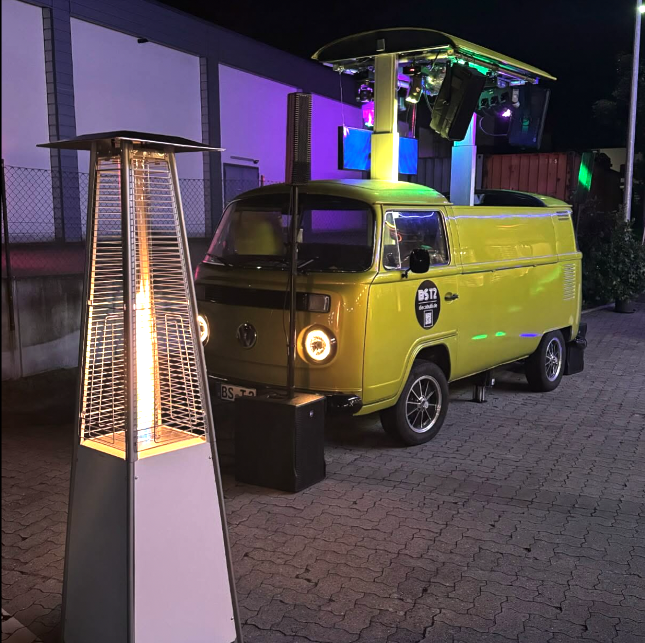 Unser VW T2 Bulli wurde liebevoll umgebaut und bietet eine beeindruckende mobile Disco-Atmosphäre. Mit modernem Soundsystem, spektakulären Lichteffekten, Nebelmaschine und einem professionellen DJ-Setup sort er für unvergessliche Events.